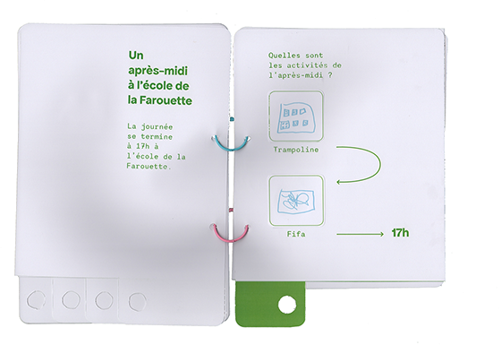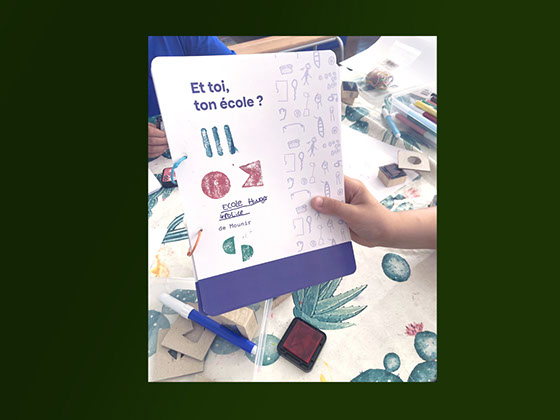 Janvier-juillet 2022 | Dans le cadre de mes recherches en design sur les enjeux d'inclusion pédagogique, j'ai travaillé avec les enfants et l'institutrice Maïa Cavalié de la classe ULIS de l'École Buffon de Toulouse. À travers une vingtaine de rencontres rythmée par des ateliers de pratiques graphiques participatives, nous nous sommes questionnés·es avec les enfants sur ce que serait une école idéale. Nous avons échangé sur les notions d'espace, de temporalité, d'apprentissage, de vivre ensemble. Pour l'ensemble de ces rencontres, j'ai réalisé des supports de médiation illustrés et pédagogiques avec lesquels les enfants étaient invités·es à interagir et produire une micro-édition. Ces micro-éditions présentent la manière dont les enfants configureraient une journée idéale à l'école et ont été présentées au reste de la classe via un dispositif interactif sonore. Avec le soutien de : L'École Buffon projet suivant → Édition Atelier-Exposition Illustration Enseignement PROJEKT