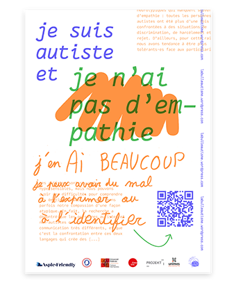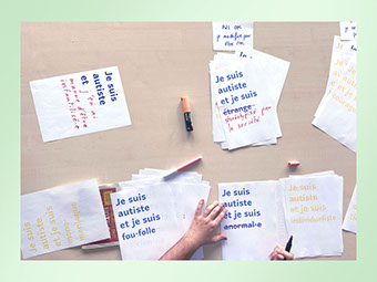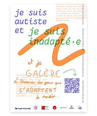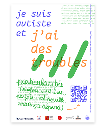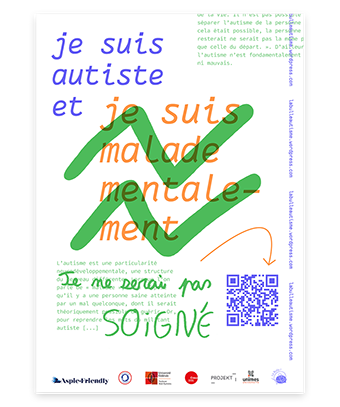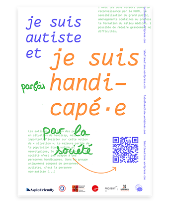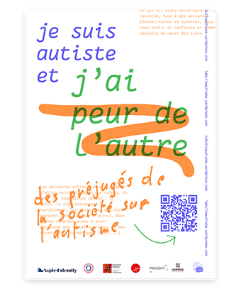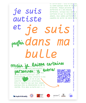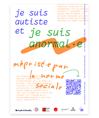 Depuis 2021 | Je suis autiste et … est un projet mené dans le cadre d'une recherche-projet en design questionnant les enjeux d'inclusion pédagogique depuis l'expérience de personnes autistes à l'université. Le projet, porté avec Charlotte Dewarumez-Minot, doctorante en histoire de l'art à l'université Toulouse - Jean Jaurès, et militante autiste, se développe autour de rencontres et d'ateliers participatifs pour lesquels la pratique graphique est mobilisée afin de rendre compte de la pluralité des expériences autistiques. La lisibilité et visibilité de ce savoir d'expérience autistique permet de poursuivre un dialogue commun sur les thématiques de validisme et plus largement de justice sociale, avec et depuis les personnes concernées. Un archivage graphique, une campagne d'affichage, des ateliers mobiles, ont d'abord été réalisés. Une édition numérique et un site internet ont ensuite été conçus afin de restituer les travaux menés et de poursuivre l'archivage de la recherche en cours. En partenariat avec : Avec le soutient de : www.jesuisautisteet.com La Bulle !