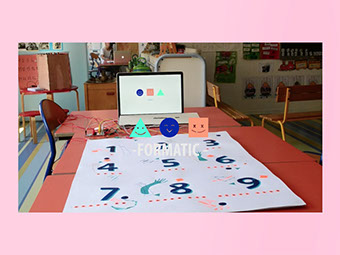 Juin 2016 | Apprends-moi à apprendre est mon projet de diplôme de DSAA interrogeant les perspectives pédagogiques du design graphique. Il rassemble deux projets Mémotic et Formatic, proposés à des enfants de grande section lors d'un workshop à l'école Parmentier (Belsunce, Marseille). Les deux dispositifs interactifs sont composés d'un ensemble de supports graphiques interagissant avec des capteurs numériques (circuit électrique + Makey Makey, caméra + Processing). Ils permettent de favoriser la consolidation de l'apprentissage des rudimentaires en mathématiques (usage cardinal et ordinal des nombres) par le corps. Mémotic est un atelier où l'enfant est amené à solutionner, à comparer, vérifier et se corriger en passant du papier, du volume, à l'écran. Formatic est un atelier où les enfants sollicitent leur corps pour assimiler l'abstraction des mathématiques à travers celui-ci (additionner, soustraire). Avec le soutient et l'aide de : L'École Parmentier de Belsunce | Dominique Leclerc Make It Marseille Toner Kebab - DSAA Marseille