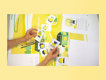 Mission création ↓ Octobre 2019 | Mission création est un atelier proposé dans le cadre de la Fête de la Science 2019 à l'université de Nîmes, proposant aux enfants et à leur famille de se glisser dans la peau d'un·e designer pour s'interroger sur des problématiques liées à la mémoire. À partir d'un scénario vulgarisé abordant le thème des neurosciences, les participants·es de l'atelier sont invités·es à réfléchir à des solutions possibles pour aider Papy à se repérer ou Caroline à dessiner. Dans le cadre de cet atelier j'ai réalisé l'identité visuelle des supports et des cartes illustrées. Co-réalisé avec : Patrizia Giannoni | Alice Martin | Stacie Petruzzellis