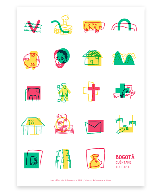 Depuis 2017 | Raconte-moi chez toi est un projet d'atelier de création graphique développé dans le cadre de l'appel à projet Création en cours porté par les Ateliers Médicis. Afin d'interroger ce qui façonne leur milieu culturel et leur patrimoine local, les enfants et les adolescents·es participants·es sont invités·es à réaliser de manière collective un alphabet conçu à partir d'une base de 19 signes correspondant à une série 19 mots désignant des éléments et des espaces urbains-ruraux. L'atelier, d'abord conçu avec les enfants et l'enseignante Diane Larrouy de l'école des Vallons à Coupiac en Aveyron, s'est exporté à l'école des Convalescents de Belsunce à Marseille, puis à l'institut Mundo Libre de Pachacamac au Perou, et au Centro Primavera de Bogotá en Colombie. Publications : Avec le soutient et l'aide de : El Centro Primavera L'École des Vallons de Coupiac L'École des Convalescents de Belsunce Diane Larrouy Yella Bystron Élodie Hardouin, Charlotte Lucas et Mathieu Guibert projet suivant → Édition Atelier-Exposition Illustration Enseignement