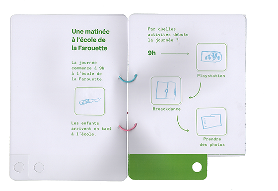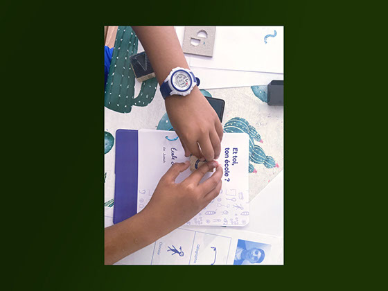 Janvier-juillet 2022 | Dans le cadre de mes recherches en design sur les enjeux d'inclusion pédagogique, j'ai travaillé avec les enfants et l'institutrice Maïa Cavalié de la classe ULIS de l'École Buffon de Toulouse. À travers une vingtaine de rencontres rythmée par des ateliers de pratiques graphiques participatives, nous nous sommes questionnés·es avec les enfants sur ce que serait une école idéale. Nous avons échangé sur les notions d'espace, de temporalité, d'apprentissage, de vivre ensemble. Pour l'ensemble de ces rencontres, j'ai réalisé des supports de médiation illustrés et pédagogiques avec lesquels les enfants étaient invités·es à interagir et produire une micro-édition. Ces micro-éditions présentent la manière dont les enfants configureraient une journée idéale à l'école et ont été présentées au reste de la classe via un dispositif interactif sonore. Avec le soutien de : L'École Buffon projet suivant → Édition Atelier-Exposition Illustration Enseignement PROJEKT